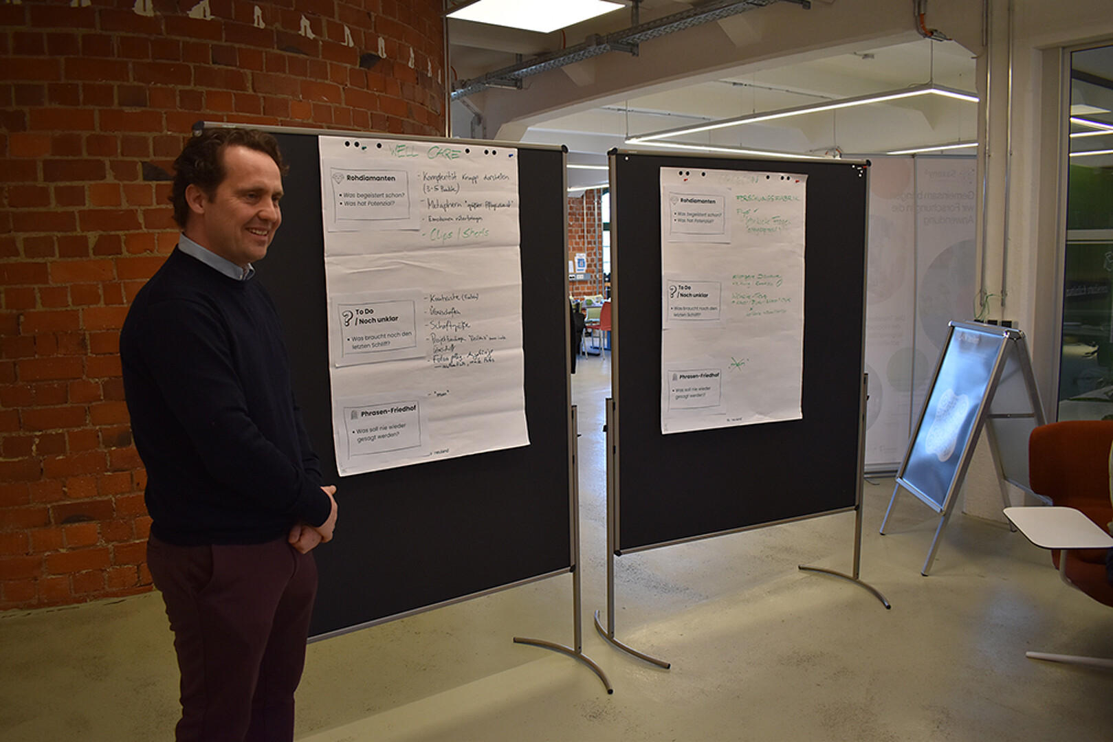 On their own: At the beginning of the workshop, the participants were asked to briefly present their respective research area or research project. The task was repeated at the end of the workshop - then with the implementation of what they had learned. If the word "synergistic" was used at the beginning of a project description, it had already disappeared again by the final presentation. And the very complex research subject had become a good narrative. Or a good story with a good hook or a successful pitch.