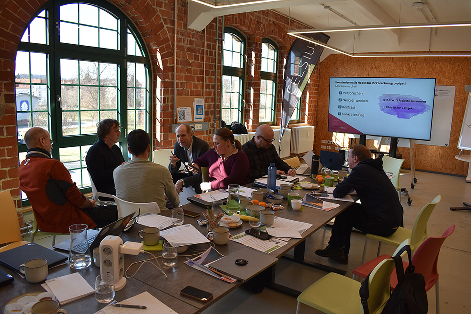 "The Zittau/Görlitz University of Applied Sciences has strong, innovative lighthouse projects. The aim of the workshop is to prepare selected projects in such a way that they become understandable, connectable and relatable for relevant target groups - without technical jargon, without so-called 'funding application German' and without losing scientific seriousness," says the handout introducing the workshop. At the end of the workshop, a toolbox consisting of target group logic, key messages, hooks and pitches should be created for each project presented by the participants, according to the core task of the workshop.