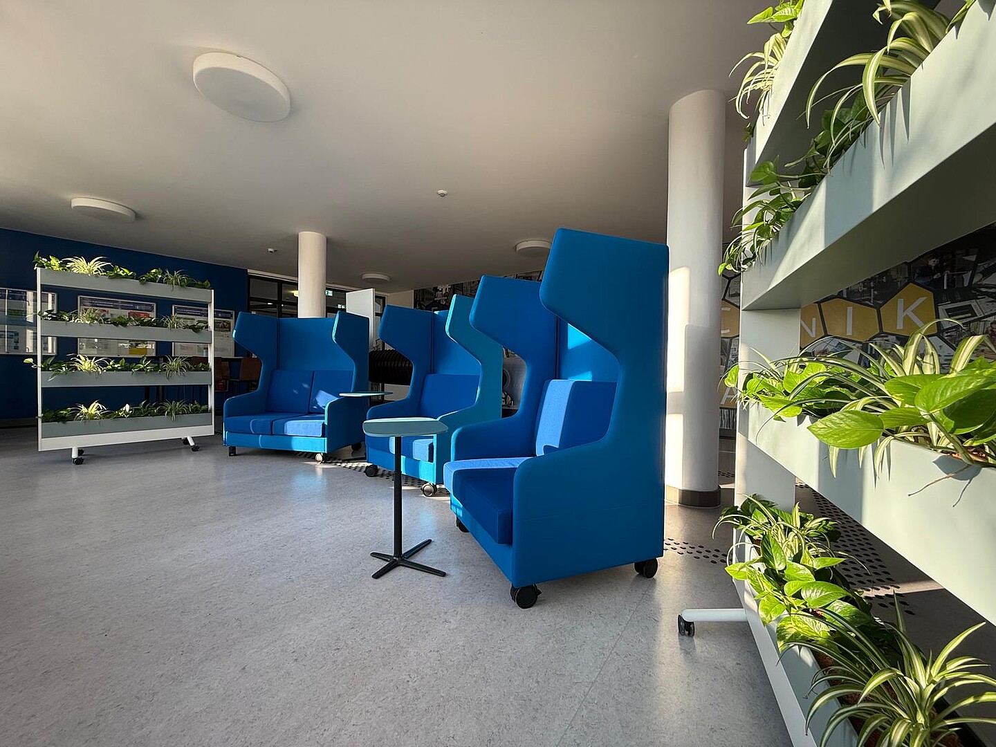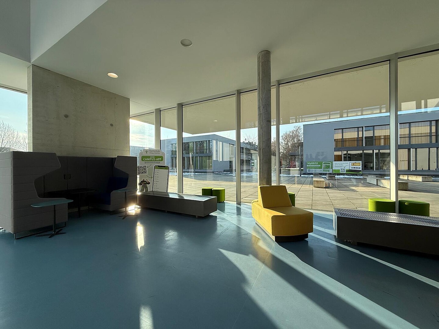 In addition, selected open spaces at the campus locations in Zittau and Görlitz were upgraded and equipped with innovative, mobile and flexibly convertible furniture. The redesign was carried out in close cooperation with the faculties. The aim is to increase the amount of time spent on campus and create new open learning areas that invite people to exchange ideas and work together.