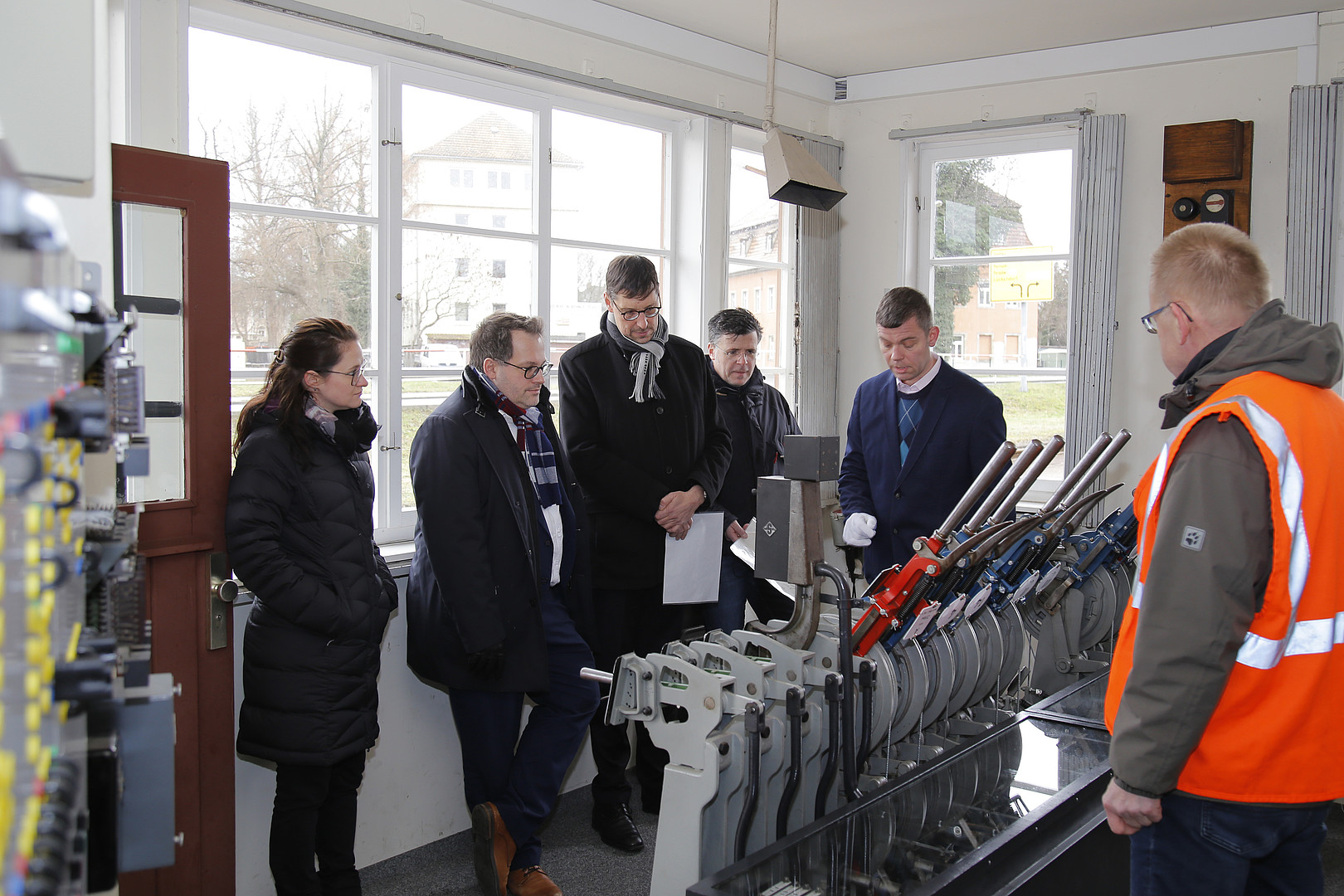 The highlight of the meeting between the HSZG and Erfurt University of Applied Sciences was the visit to the Zittau Süd training signal box. Volker Brade and Patrick Hornung, members of the Faculty of Electrical Engineering and Computer Science ' at HSZG, demonstrated the railway-specific control and safety technology that both Erfurt and Zittau students are learning. The guests were able to gain an impression of the practical teaching content directly on site by setting the points themselves. This was crowned with a ride on the Zittau narrow-gauge railroad.