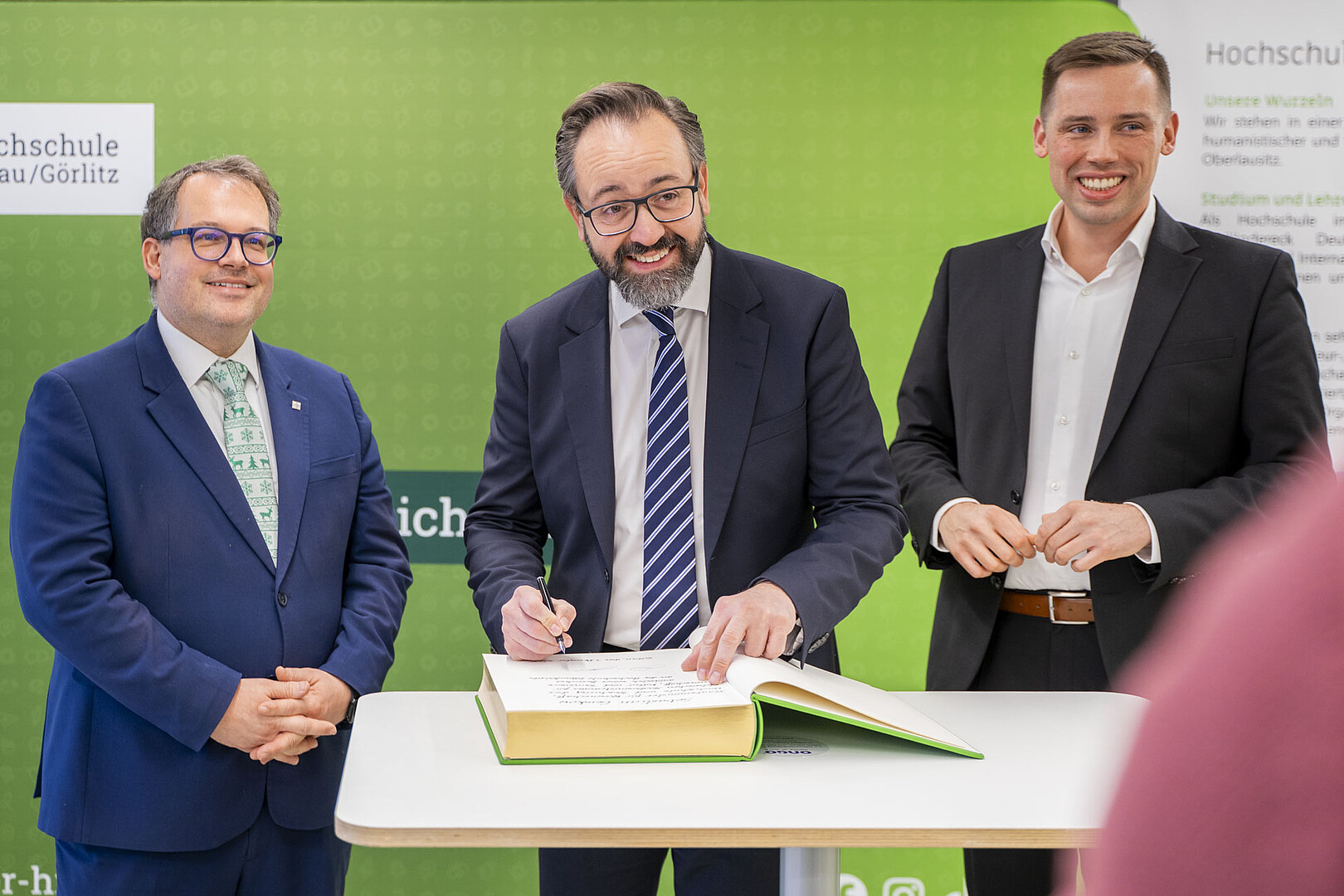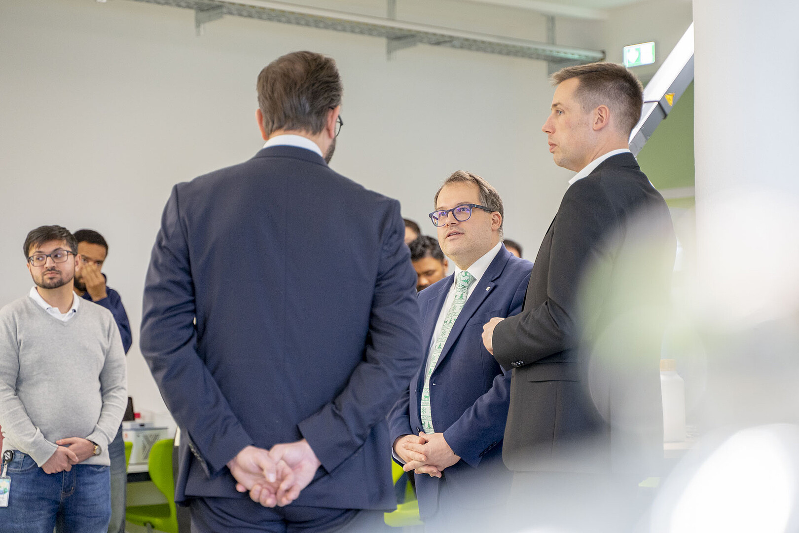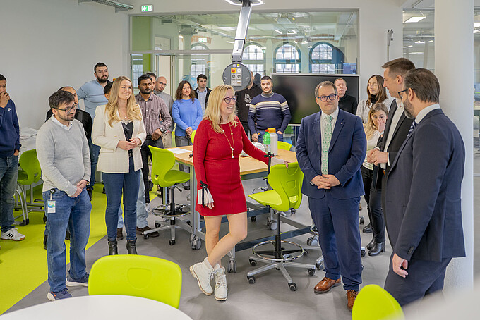 High-ranking visitor from the world of (science) politics at Zittau/Görlitz University of Applied Sciences (HSZG) at the beginning of December. The Saxon State Minister for Science, Sebastian Gemkow, and the Member of the Bundestag Florian Oest (CDU, Member of the Bundestag for the district of Görlitz) were guests at the HSZG in CELSIUZ, the HSZG's co-creation lab, at the beginning of December. On the agenda for the visit: the topic of International Affairs, the international positioning of the Free State of Saxony as well as field reports from international professionals and students.