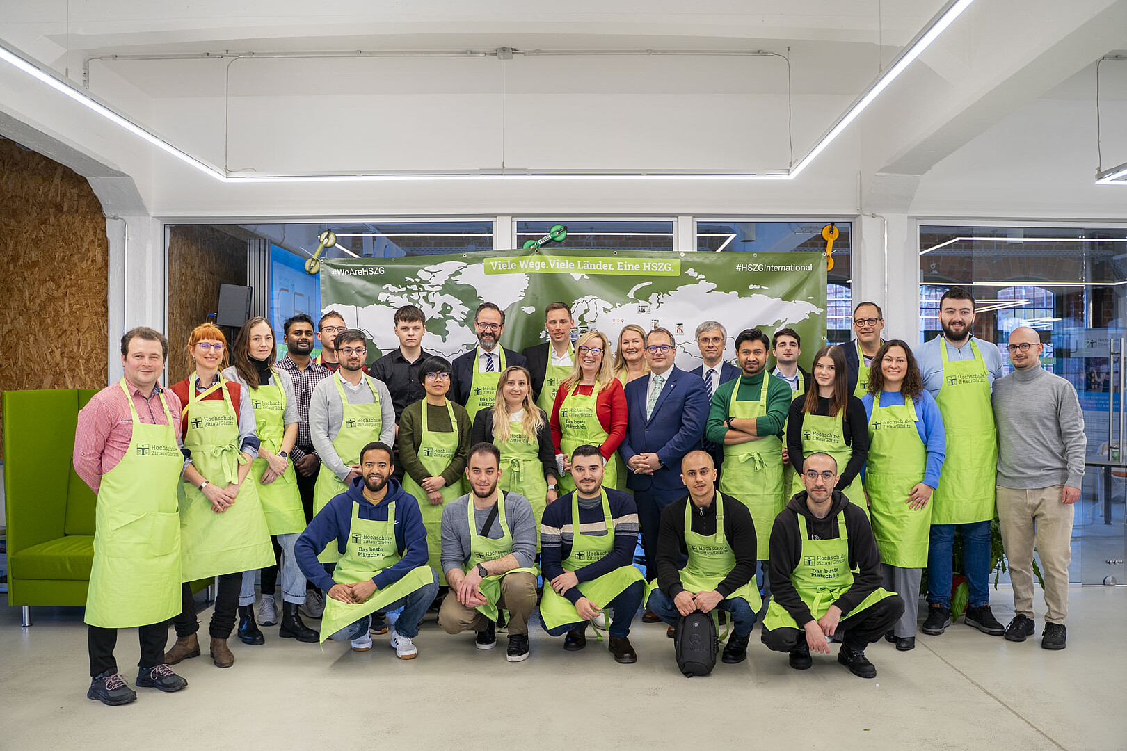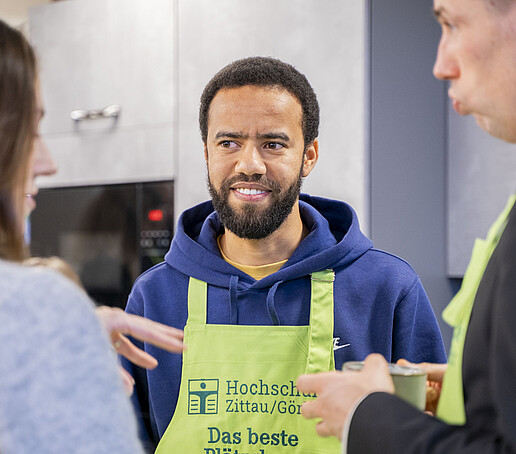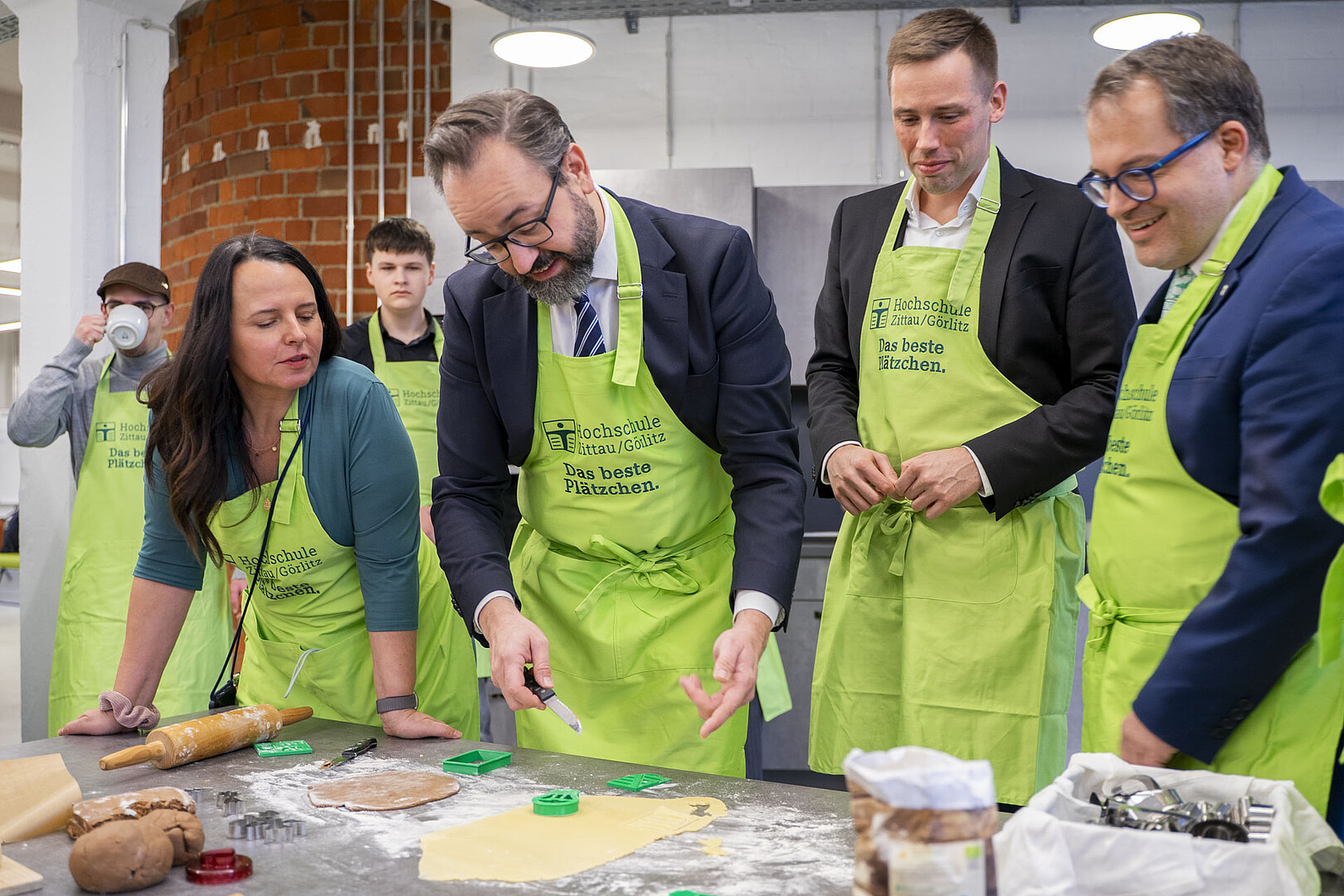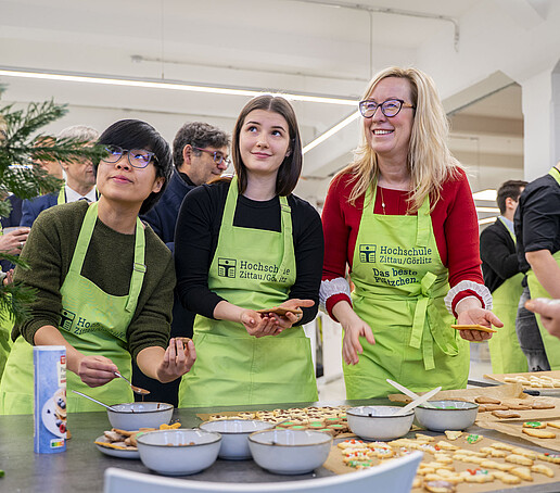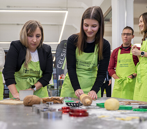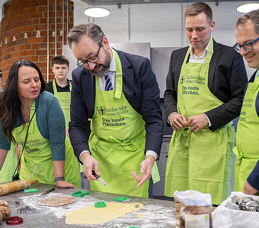 Minister of State Sebastian Gemkow visits the HSZG in Celsiuz to bake cookies together and exchange ideas with students from abroad.