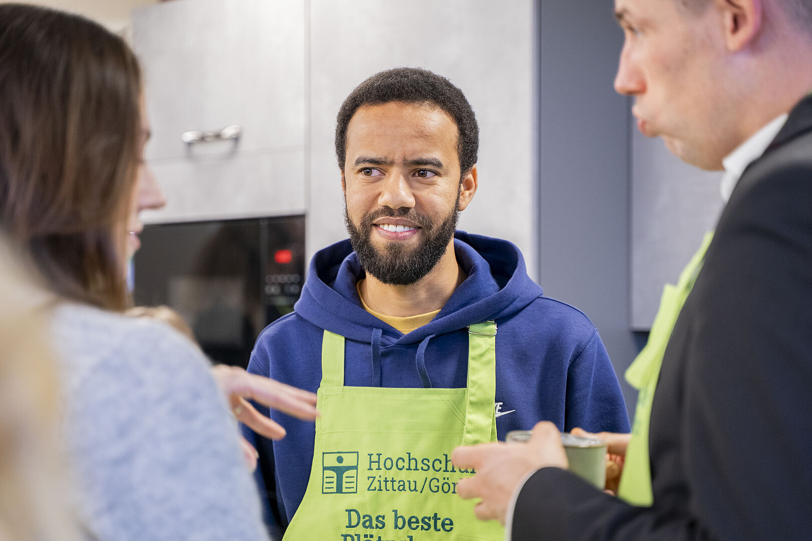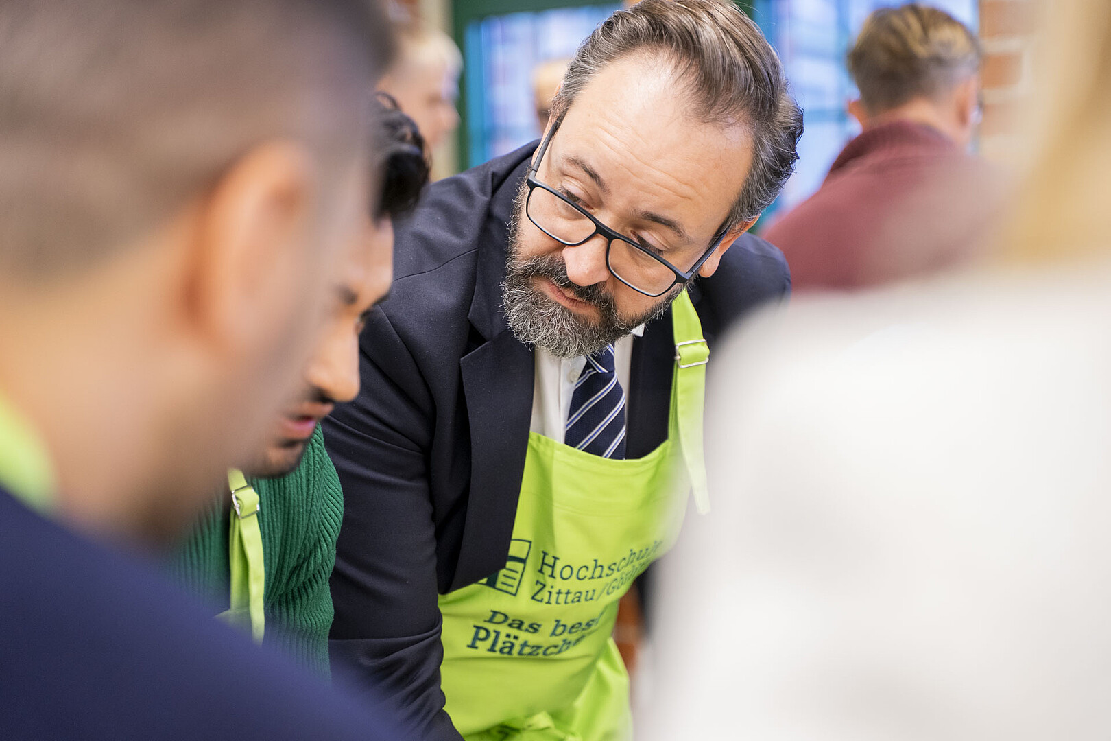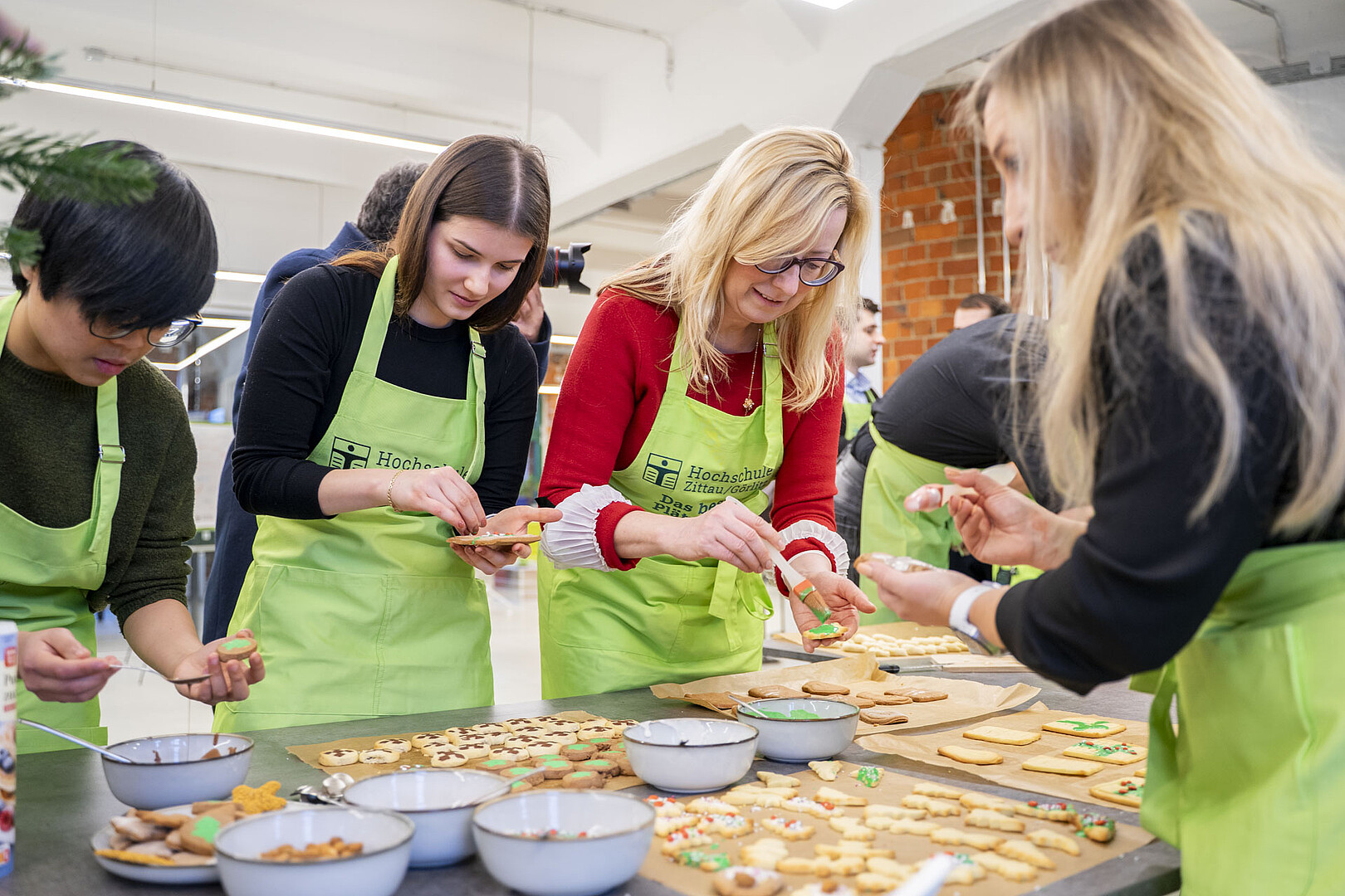 Minister of State Sebastian Gemkow visits the HSZG in Celsiuz to bake cookies together and exchange ideas with students from abroad.