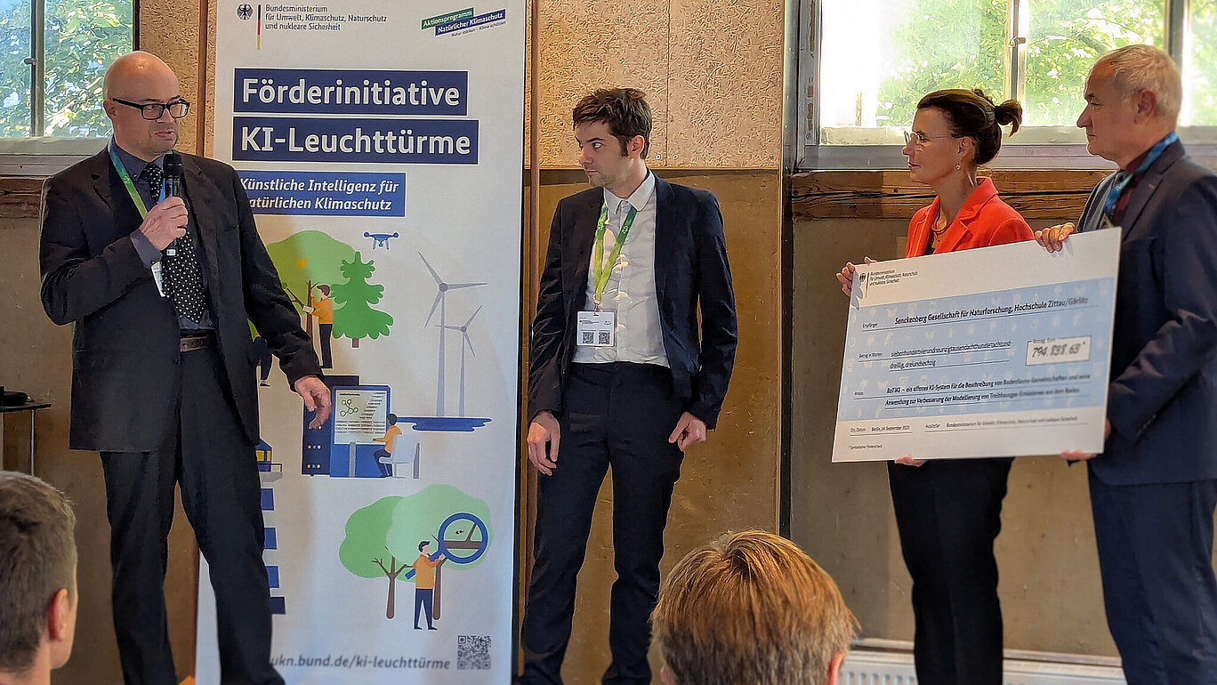 On Wednesday, September 24, 2025, the Impact Hub Berlin hosted the ceremonial handover of funding decisions for new projects funded as part of the "AI Lighthouses for Environment, Climate, Nature and Resources" initiative with a focus on natural climate protection. This includes the recently launched project "Open AI system for the description of soil fauna communities to optimize greenhouse gas emission modelling (BoTiKI)". BoTiKI is a joint project of the Senckenberg Society for Nature Research and the Zittau/Görlitz University of Applied Sciences (HSZG). Rita Schwarzelühr-Sutter, Parliamentary State Secretary to the Federal Minister for the Environment, Climate Protection, Nature Conservation and Nuclear Safety, presented the funding decision to Dr. Clément Schneider from the Senckenberg Museum für Naturkunde Görlitz and Dr.-Ing. André Seeliger from the Institute of Process Technology, Process Automation and Metrology (IPM) at the HSZG.