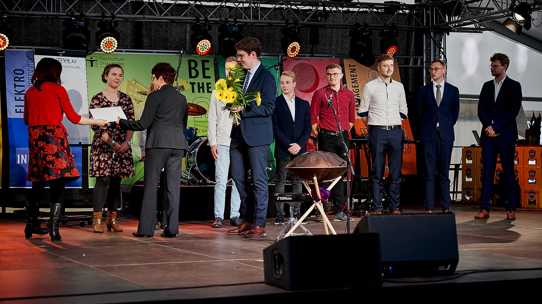 The HSZG moderation duo Carolin Renner (Management of Social Change student) and Cornelius Baier (Culture and Management graduate) hosted the ceremony in their usual entertaining manner. Musical accompaniment was provided by computer science student Jonathan Zopf on the grand piano, Cti Hang on the hang drum and singer Adriana Bessogonov.