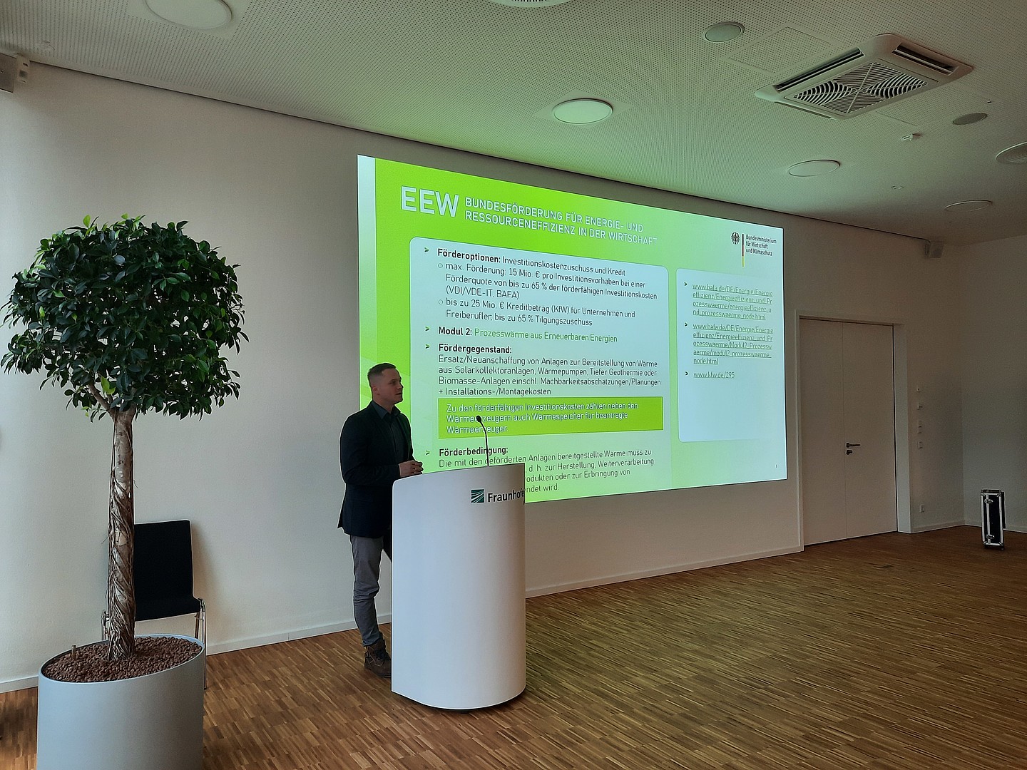 At 10 a.m. on Friday morning, Dr. Andreas Wilde opened the workshop as head of the "Building Energy Technology" working group and host at Fraunhofer IIS. Marcus Rohne, PhD student at the TU Bergakademie Freiberg and research associate at the Zittau/Görlitz University of Applied Sciences, then gave the first keynote speech entitled "Fundamentals, development status and application scenarios for heat storage systems", providing a technical introduction to the event. The second impulse at the opening came from Energy Saxony on "Current funding opportunities" and was given by Dr. Clemens Schneider as head of the "Heating and cooling" working group.