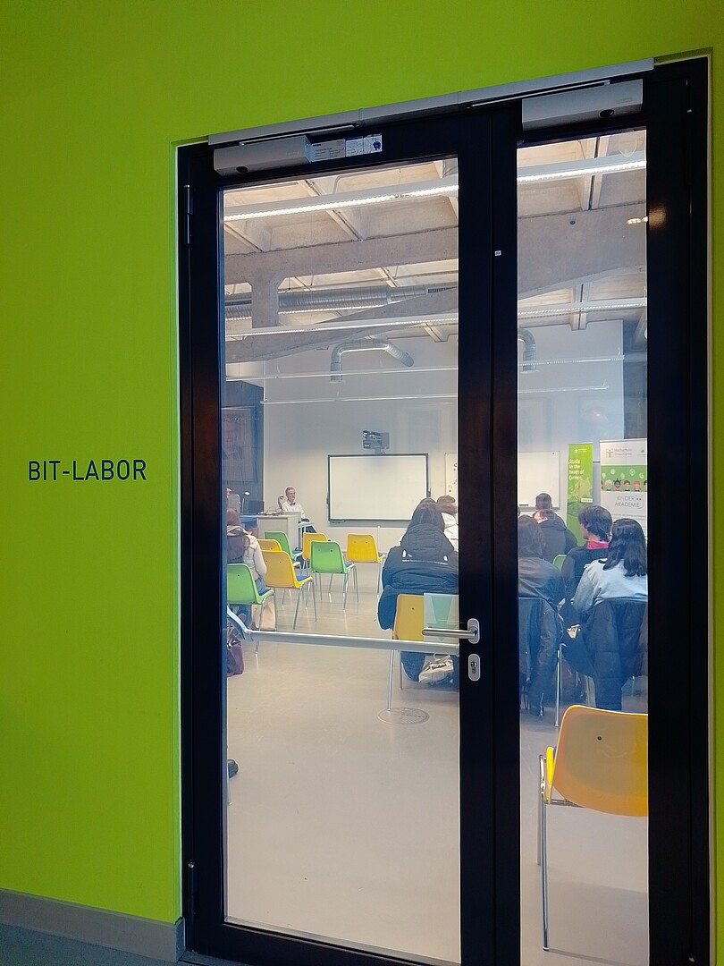 The speaker was Prof. Dr.-Ing. Klaus ten Hagen, Faculty of Electrical Engineering and Computer Science' at the Zittau/Görlitz University of Applied Sciences, who spoke enthusiastically to the pupils. "I explained that I was going to show them programming and they got out their tablets. I wouldn't have expected that. When the WiFi access data was on the board and the pupils asked what they were supposed to do, the accompanying teacher replied: 'Just like in class', and they were on the Internet. The students called up the scratch.mit program and diligently programmed along. They all entered the presented programs on their tablets and ran them. I am impressed!"
