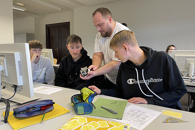 Alle zwei Wochen tauchen 25 Zehntklässlerinnen und Zehntklässler des Joliot-Curie-Gymnasiums Görlitz im Rahmen des modularen Profilunterrichts für 90 Minuten in die Welt der Robotik ein. Der Kurs findet an der Hochschule Zittau/Görlitz im Bereich Informatik statt und bietet den Schüler:innen die Gelegenheit, Hochschulluft zu schnuppern sowie die Informatik näher kennenzulernen. Dies erfolgt in einer Kombination aus Vorlesungs- und Übungseinheiten.