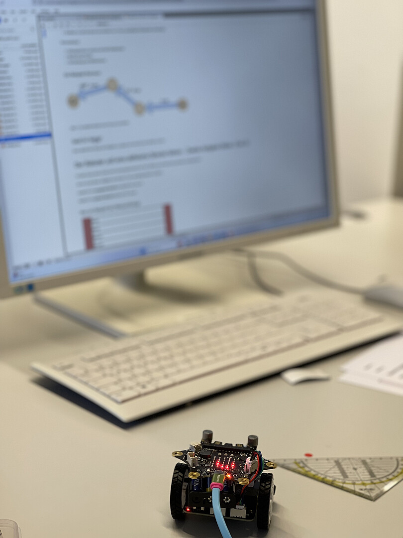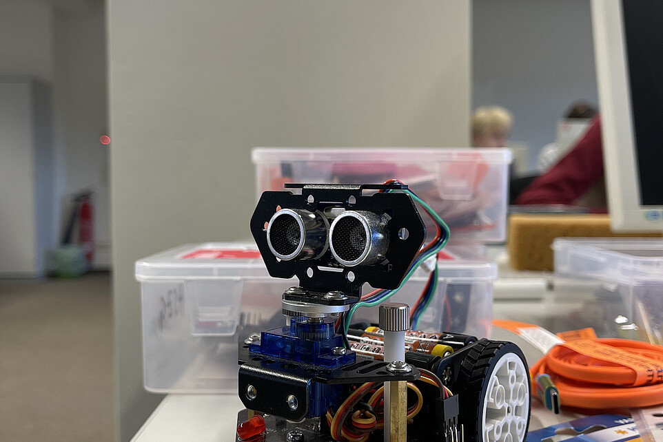 Gearbeitet wurde in kleinen Gruppen, in denen sich die Schülerinnen und Schüler gegenseitig unterstützten, Fehler analysierten und Lösungsstrategien diskutierten. Zwei Lehrkräfte der Fakultät begleiteten den Kurs und standen mit fachkundigem Rat zur Seite. Die Begeisterung war groß, als die Roboter ihre ersten Parcours erfolgreich meisterten. Gelächter, Jubelrufe und stolze Gesichter inklusive.