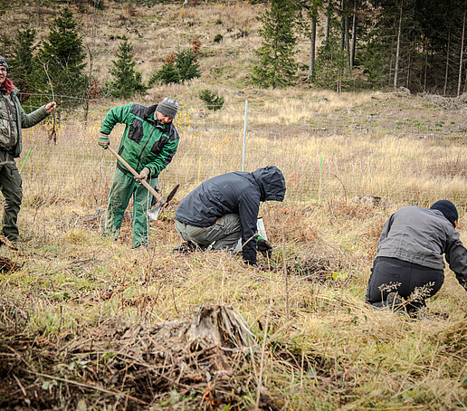 Der Boden lässt sich aktuell hervorragend bearbeiten – und ein paar Bäume im Winterwald zu pflanzen, hat seinen ganz eigenen Charme.
