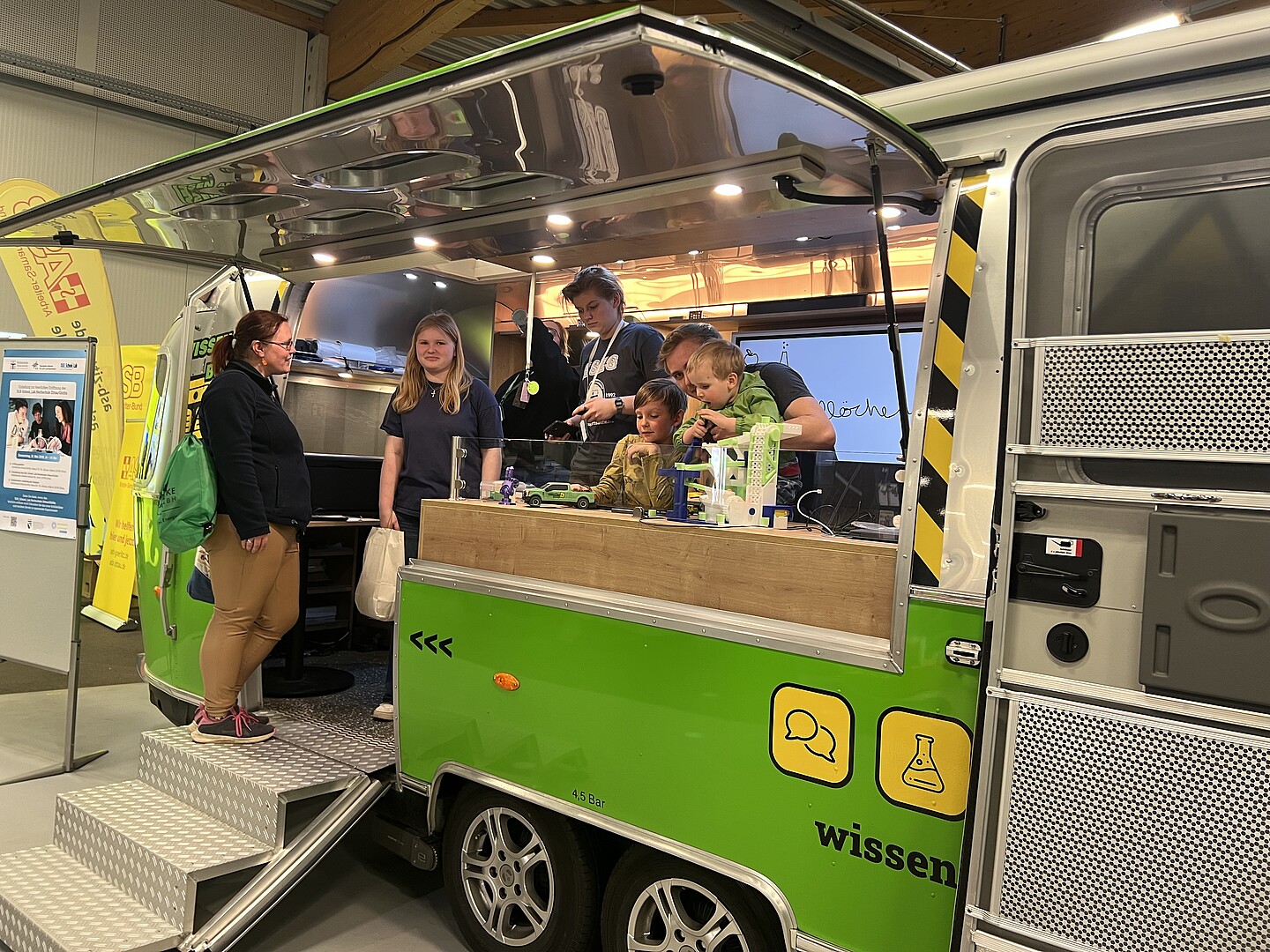 Im Mittelpunkt des Auftritts stand der mobile Lernort der Hochschule – ein aufwendig umgebauter Airstream-Anhänger, der als rollendes Labor moderne Technik erlebbar machte. Ausgestattet mit einem Laser-Cutter und einem 3D-Drucker, konnten vor allem die jüngeren Messegäste kreativ werden: Sie entwarfen und fertigten eigene Schlüsselanhänger, die sie stolz mit nach Hause nahmen.