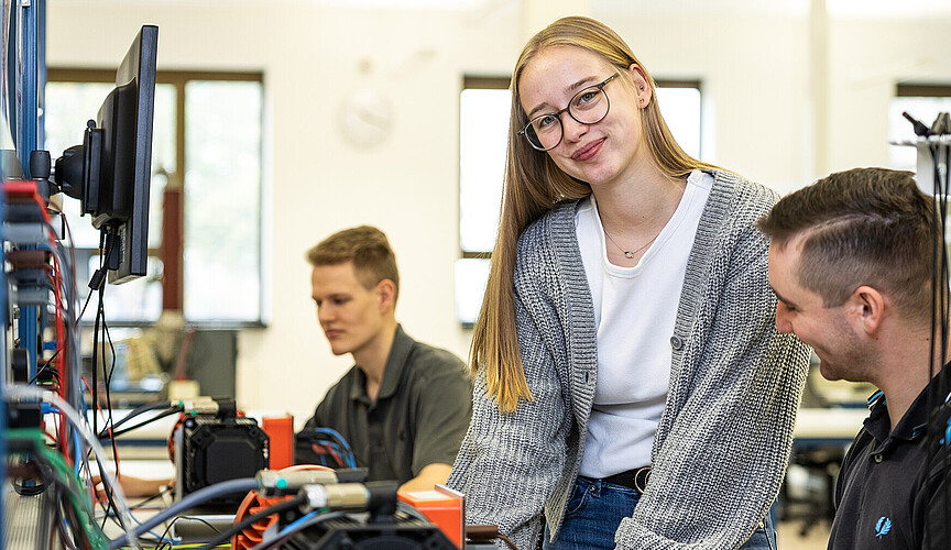 Mit diesem breiten Fundament und einer Spezialisierung in einer der Vertiefungsrichtungen Mechatronik, Automatisierungstechnik/Industrie 4.0 oder Intelligente Netze und Anlagen bist du optimal für den Arbeitsmarkt gerüstet. Du lernst, kreative Lösungen für technische Herausforderungen zu entwickeln und trägst dazu bei, nachhaltige und intelligente Technologien voranzubringen. Sei Teil einer Generation, die Technologie nicht nur nutzt, sondern aktiv prägt und die digitale Zukunft gestaltet.